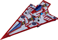 · The impressive model is approximately 330mm in length. The model allows for transformation and combination of the 5 mechs. When combining, the use of interchangeable front wheel parts for G-2 and additional support parts for the tip of G-3 are required. · Gatcha Nos. 2-5 feature an original color scheme based on their colors when combined. · Red and white tip parts for G-1 are included, allowing for display options with either color. · A ready-to-assemble Ken Washio, the Eagle (unpainted, adhesive required) wielding the Gatchaman Fencer in the same scale is also included. · Hypershoot mode can be recreated by standing Ken Washio, the Eagle on top of the aircraft. · A base featuring the Science Ninja Team's Bird mark motif is also included, allowing the model to be displayed mid-flight. The base of the figure has been redesigned with a translucent color inspired by the Hypershoot effect. · The various parts of the mecha have been separated into different colored runners, pre-painted parts and stickers, making it easy to recreate the mecha with a simple assembly. Ready-to-assemble non-scale plastic model kit. Approximately 330mm in length.
